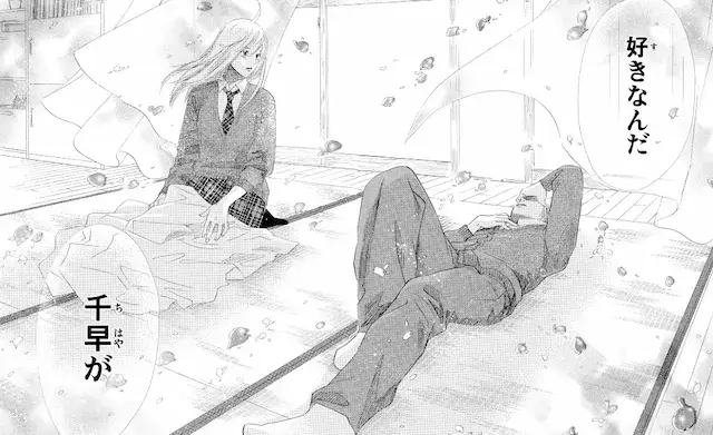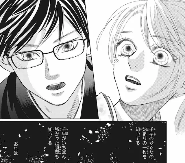 名人への挑戦権をかけた激闘が続く中、千早の中に小学6年生から変わらない心を見て取った新は「好きや」と告白する。