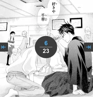 第三試合、読みは引退していた九頭竜読手。原田先生の喝も受けて自分の攻めがるたに集中した千早、そして名人への執着をみせた周防は、それぞれ天賦の”感じ”を武器に勝利をおさめる。(四十五巻)